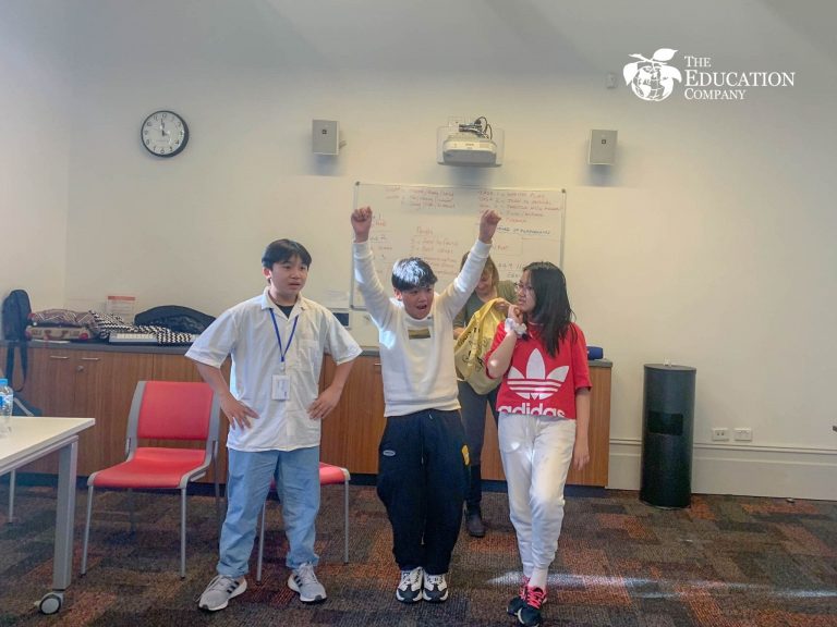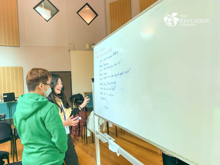 Các con được học cách xây dựng cốt truyện, viết kịch bản và cuối buổi mỗi nhóm sẽ lên diễn kịch. Tại mỗi bước, cô Katie đều sát sao hướng dẫn để các bạn cải thiện phần thể hiện của mình. Tới chiều, các con đến Phòng trưng bày nghệ thuật ARTVO và chụp những bức hình lưu niệm thú vị.