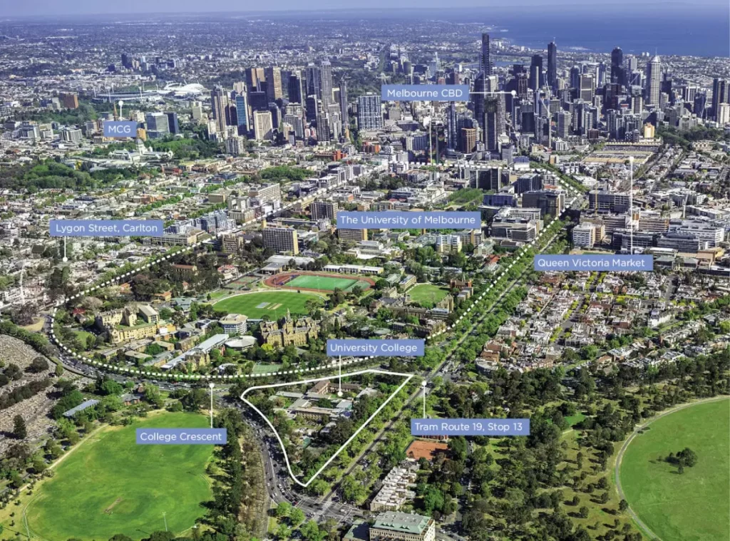 Đại học Melbourne hiện đang quản lý tổng cộng 12 ký túc xá nội trú. Trong số này, 7 ký túc xá tọa lạc tại một dải đất hình vòng cung được gọi là College Crescent, trải dài tại rìa phía bắc của khuôn viên chính Parkville.