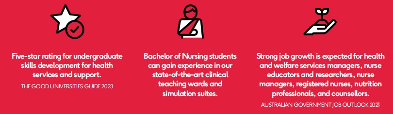 Murdoch cũng cung cấp nhiều khóa học về chăm sóc sức khỏe như Psychology, Biomedical Science, Clinical Laboratory Science… trong đó có một ngành học được rất nhiều sinh viên Việt Nam chú ý đến vì chi phí rẻ và yêu cầu đầu vào không quá khắt khe và cạnh tranh như nhiều ngành ở Úc đó là Bachelor of Nursing – 3 năm, IELTS đầu vào là 6.5 (Không có kỹ năng nào dưới 6.5).