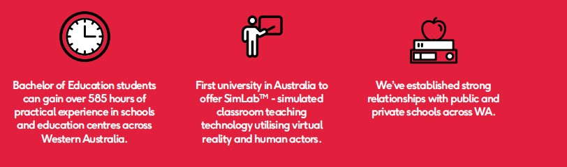 Ở vị trí số 1 ở Úc về công nghệ giảng dạy, được đánh giá 5 sao cho mức lương khởi điểm sau tốt nghiệp theo đánh giá THE GOOD UNIVERSITIES GUIDE 2019, và top 200 thế giới về Education trên TIMES HIGHER EDUCATION 2019.