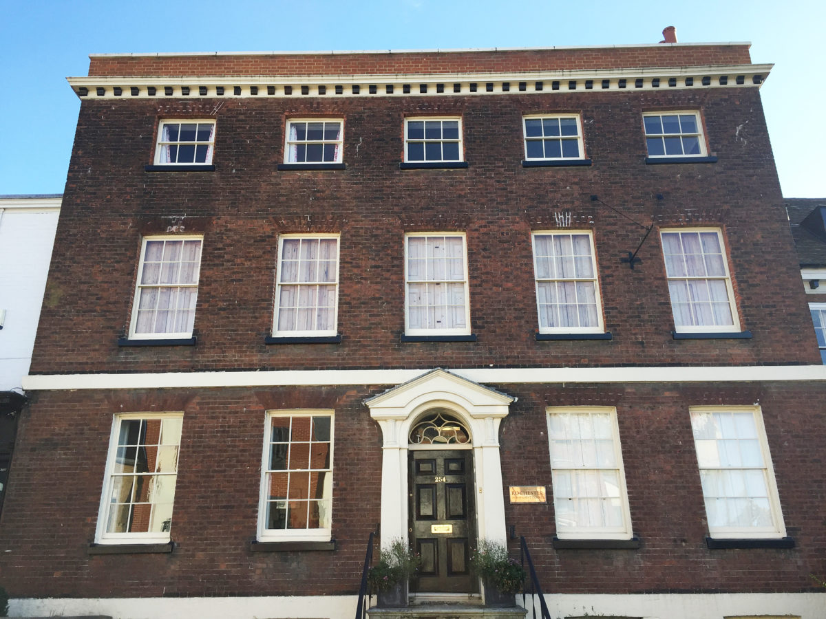 Rochester nằm cách London 37 phút đi tàu về phía Đông Nam ở Thành phố Kent. Tại đây là những con phố đẹp tráng lệ với những tòa lâu đài, nhà thờ, và một loạt các cửa hàng cổ điển, hiệu sách và quán cà phê, thành phố yên tĩnh thích hợp để học tập. Nơi đây cũng là nơi kết nối giao thông thuận tiện, cách sân bay Gatwick 50 phút lái xe và sân bay Heathrow cách đó 70 phút.
